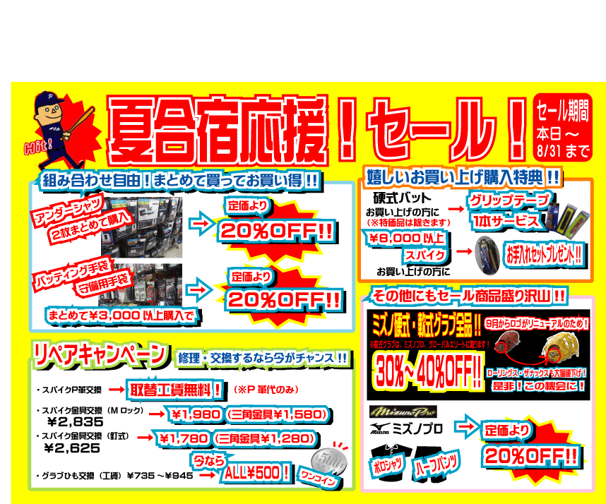 8/31まで夏合宿応援セール開催中です。