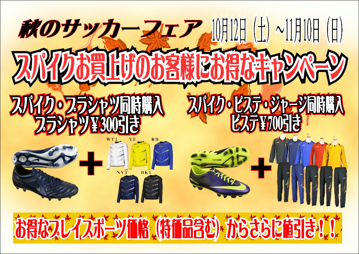 スパイクをお買い上げのお客様でプラシャツ・ピステ・ジャージを同時購入により