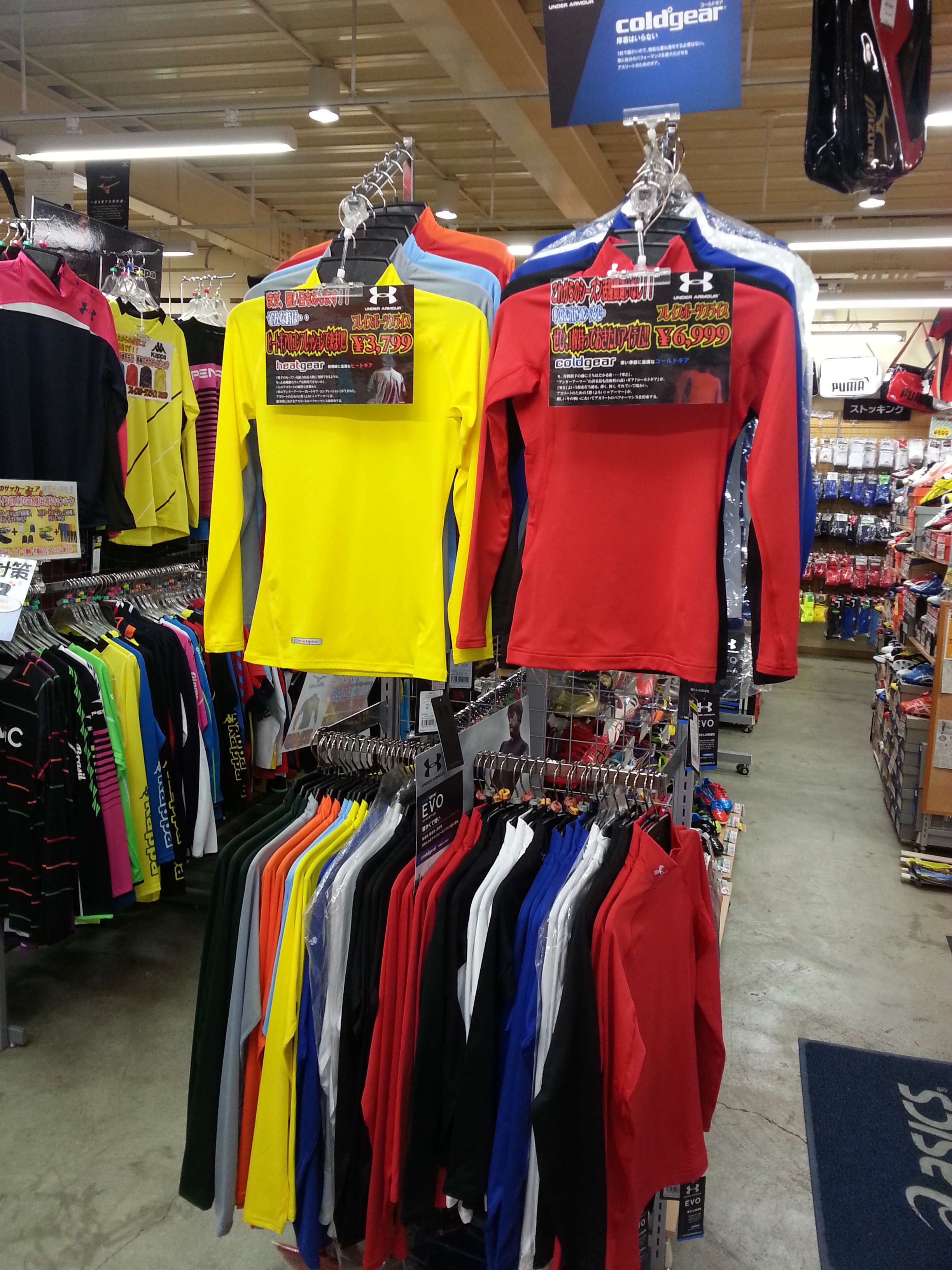 今年もいよいよ寒い季節が近づいてきました。 プレイスポーツでは、一足早く冬本番に向け、寒さ対策グッズの販売を開始しました。 ウィンドブレーカー、ネックウォーマー、手袋など今年の秋冬モデルをはじめ、種類豊富に取り揃えています。 冬が始まってからでは、遅いです!!今のうちから備えておくのはどうでしょうか。