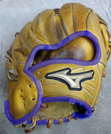 (高校野球などでは、本体とヘリ革は同色がルールです。)
