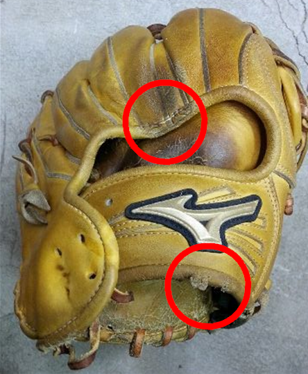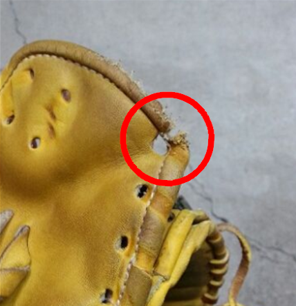 人差し指を外に出してる部分の革が傷んでいる。(その他部分も)